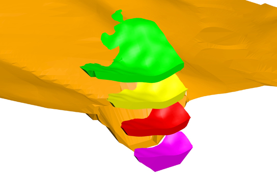 Geographical features: 3D rendering of the configuration for each of the geographical features of the excavation sections, and quantity takeoff for each of the supporting geological features