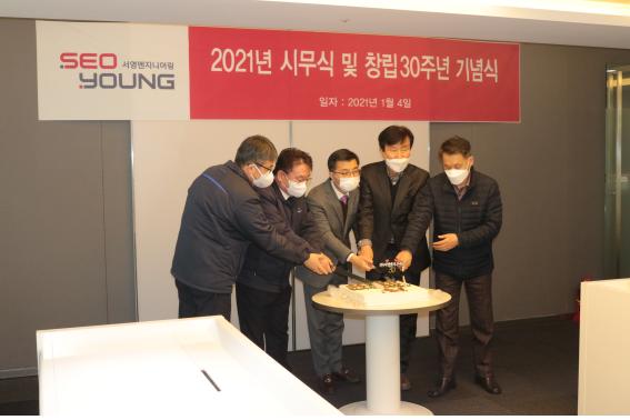 서영엔지니어링은 4일 경기 성남시 본사에서 ‘2021년 시무식 및 창립 30주년 기념식’을 개최했다. 코로나19 방역지침에 따라 이 자리에는 최소 인원만 참석했고, 임직원들은 온라인 생중계를 통해 시청했다.