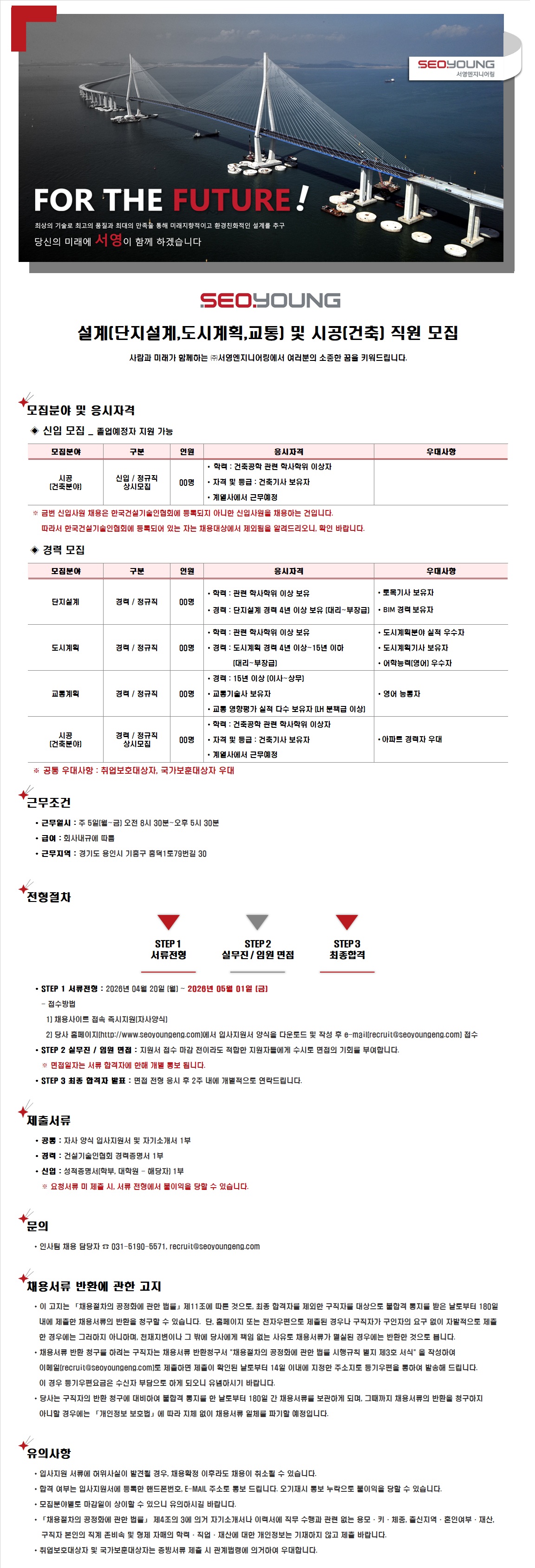 설계(단지설계,도시계획,교통) 및 시공(건축) 직원 모집