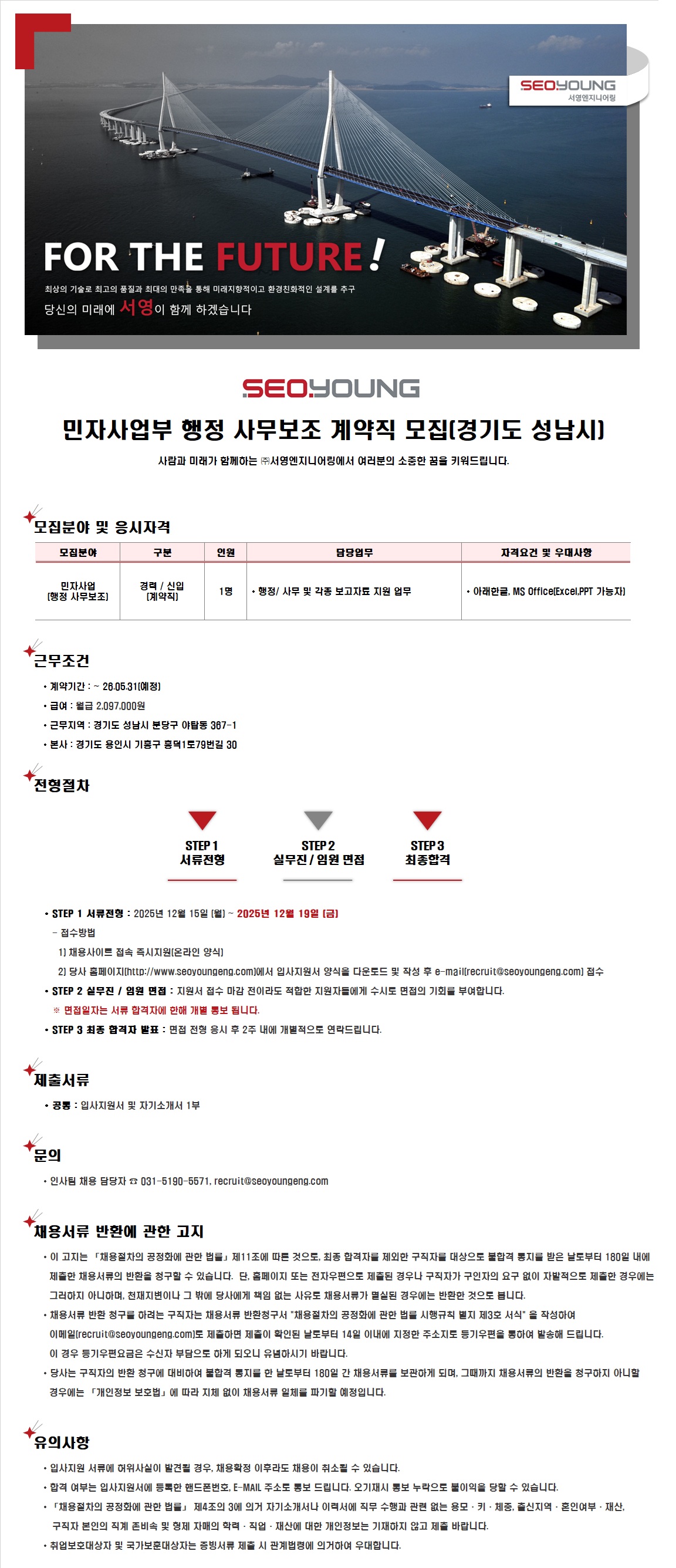 민자사업부 행정 사무보조 계약직 모집(경기도 성남시)