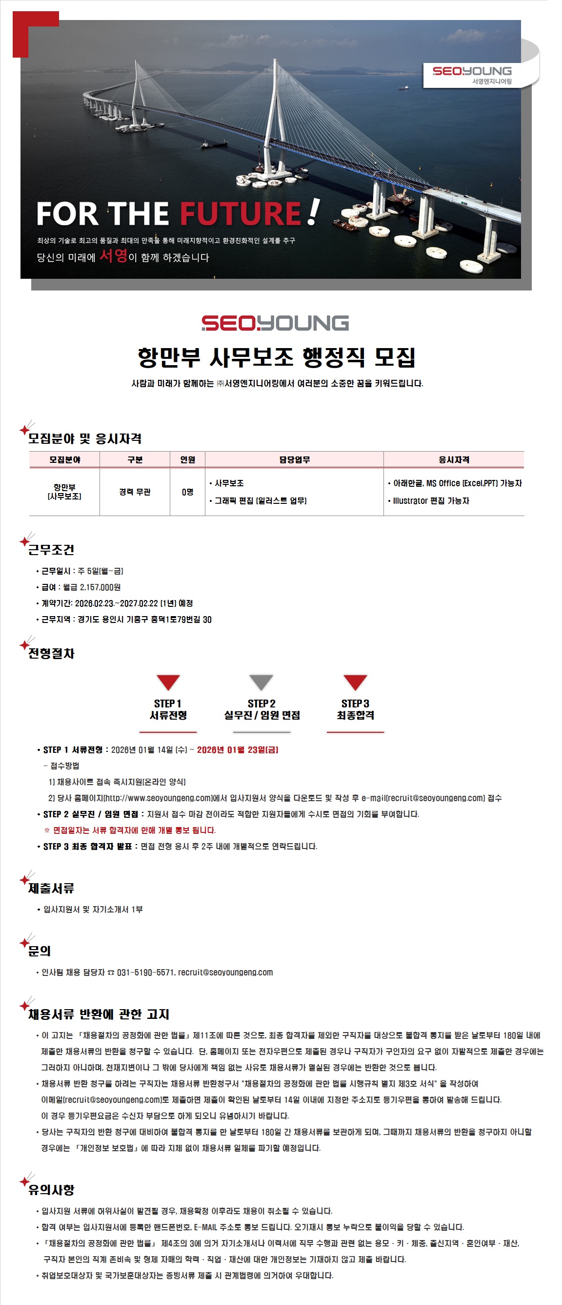 항만부 사무보조 행정직 모집