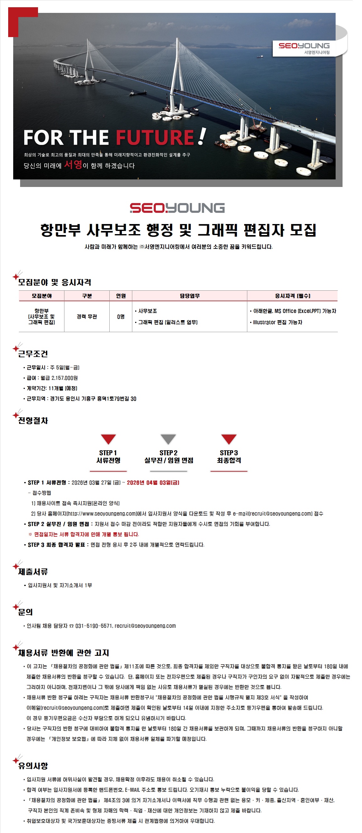 항만부 사무보조 행정 및 그래픽 편집자 모집