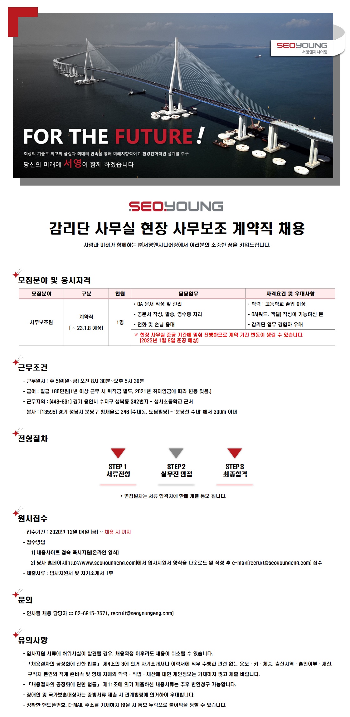 현장 사무보조 계약직 채용